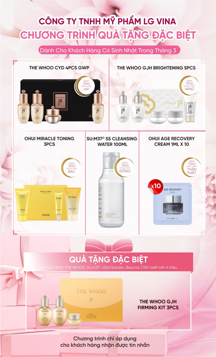 Công ty TNHH Mỹ phẩm LG Vina trân trọng gửi tới Quý khách hàng chương trình quà tặng dành cho khách hàng sinh nhật tháng 03 như sau: