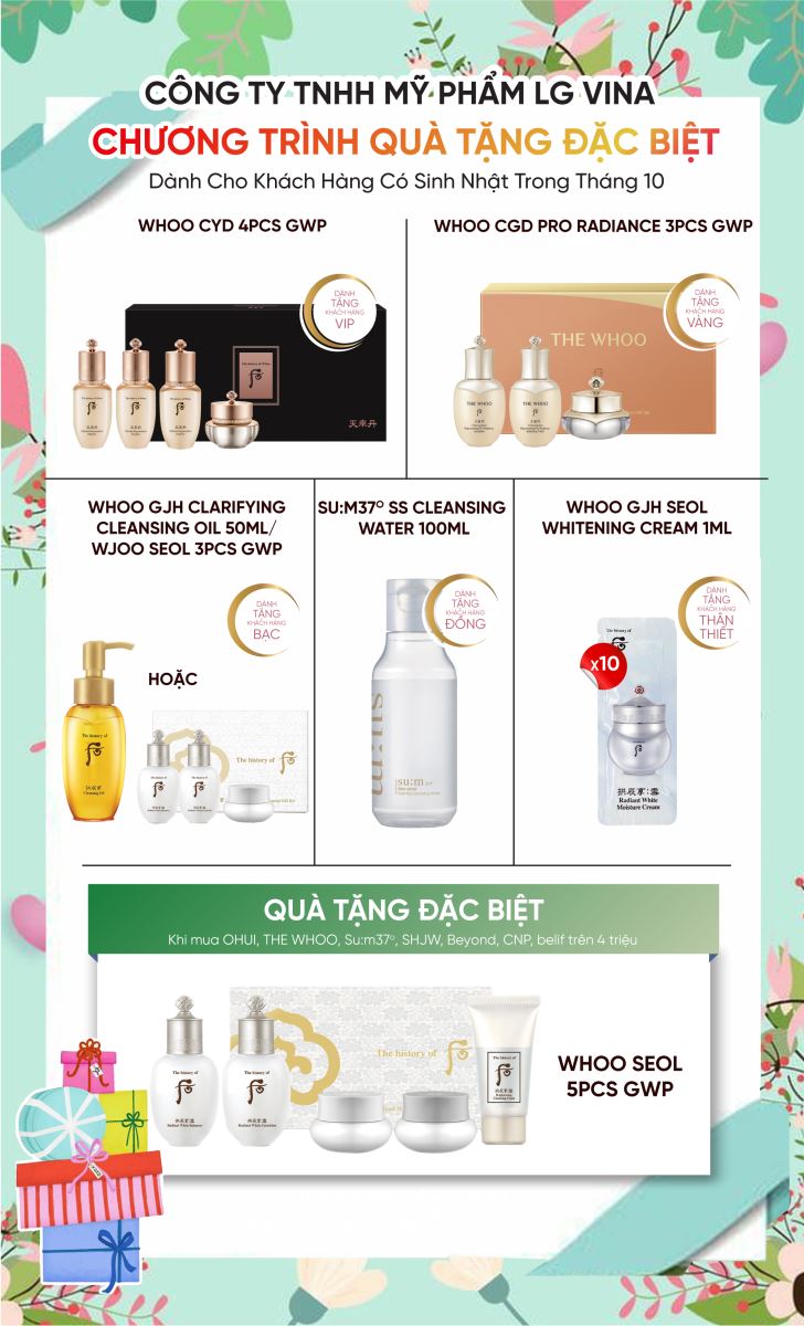 Công ty TNHH Mỹ phẩm LG Vina trân trọng gửi tới Quý khách hàng chương trình quà tặng dành cho khách hàng sinh nhật tháng 10 như sau: